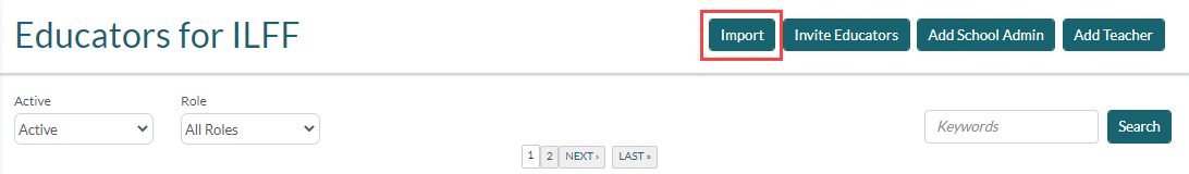 3. On the Educators page, click Import.