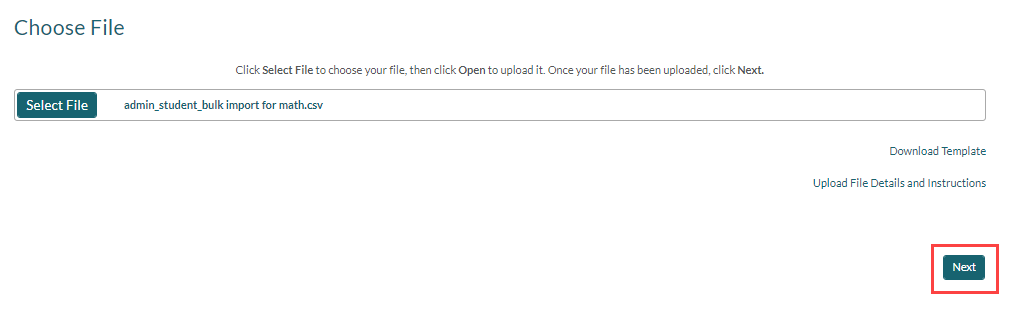 7. Click Select File to browse for and choose your import file, and then click Next.