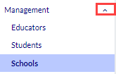 In the Management portion of the left navigation pane, select Schools.