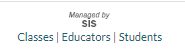 If you see Managed by SIS next to accounts or classes, this means your district uses a Student Information System integration tool to manage accounts, classes, and schools within your district. Contact your district's Imagine Math administrator to find out what information you can manually edit and what has to be done through the SIS.