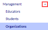 In the Management portion of the left navigation pane, select Organizations.