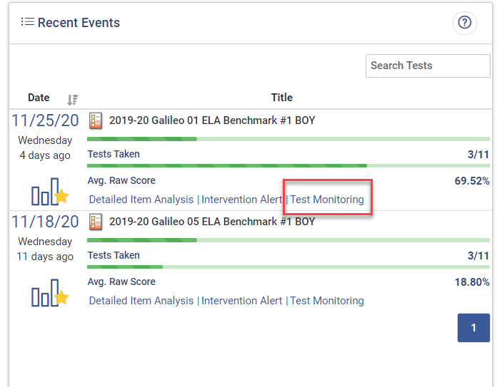 Administrators can check the testing status of groups or classes in their school or district using the recommended Testing Activity tools. Alternately, Administrators can view class and student testing status as a Teacher by using the recommended Test Monitoring method in the Teachers section.